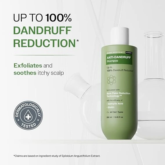 Bare Anatomy takes a science-backed approach to dandruff care. Instead of relying on harsh chemicals or artificial fragrances, it uses clinically proven active ingredients to target the root cause of dandruff.